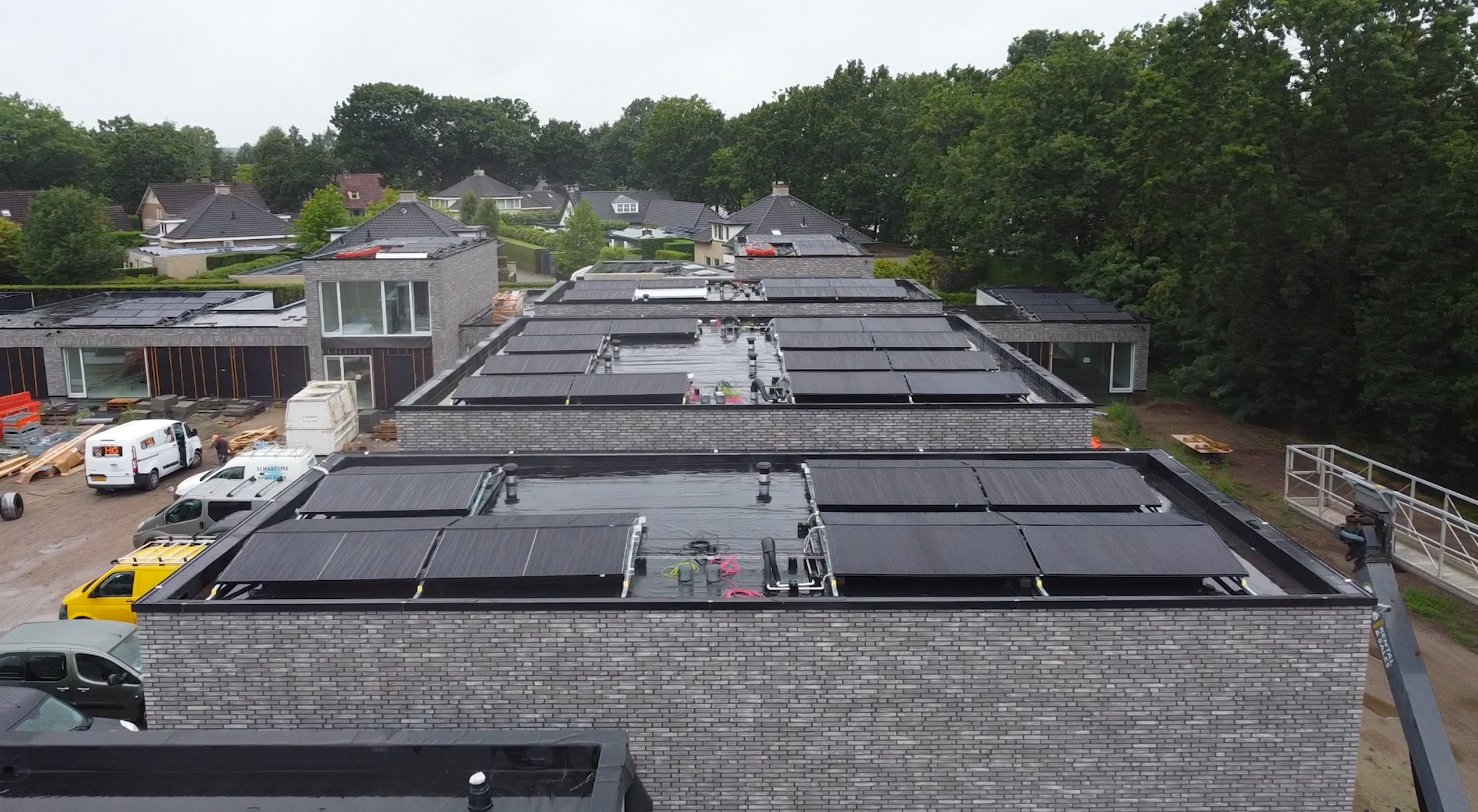 Vlak bij Breda worden 16 duurzame pre-fab woningen geplaatst die allen worden verwarmd en gekoeld door de 16 Triple Solar PVT-warmtepompen met 69 Triple Solar PVT-panelen.
