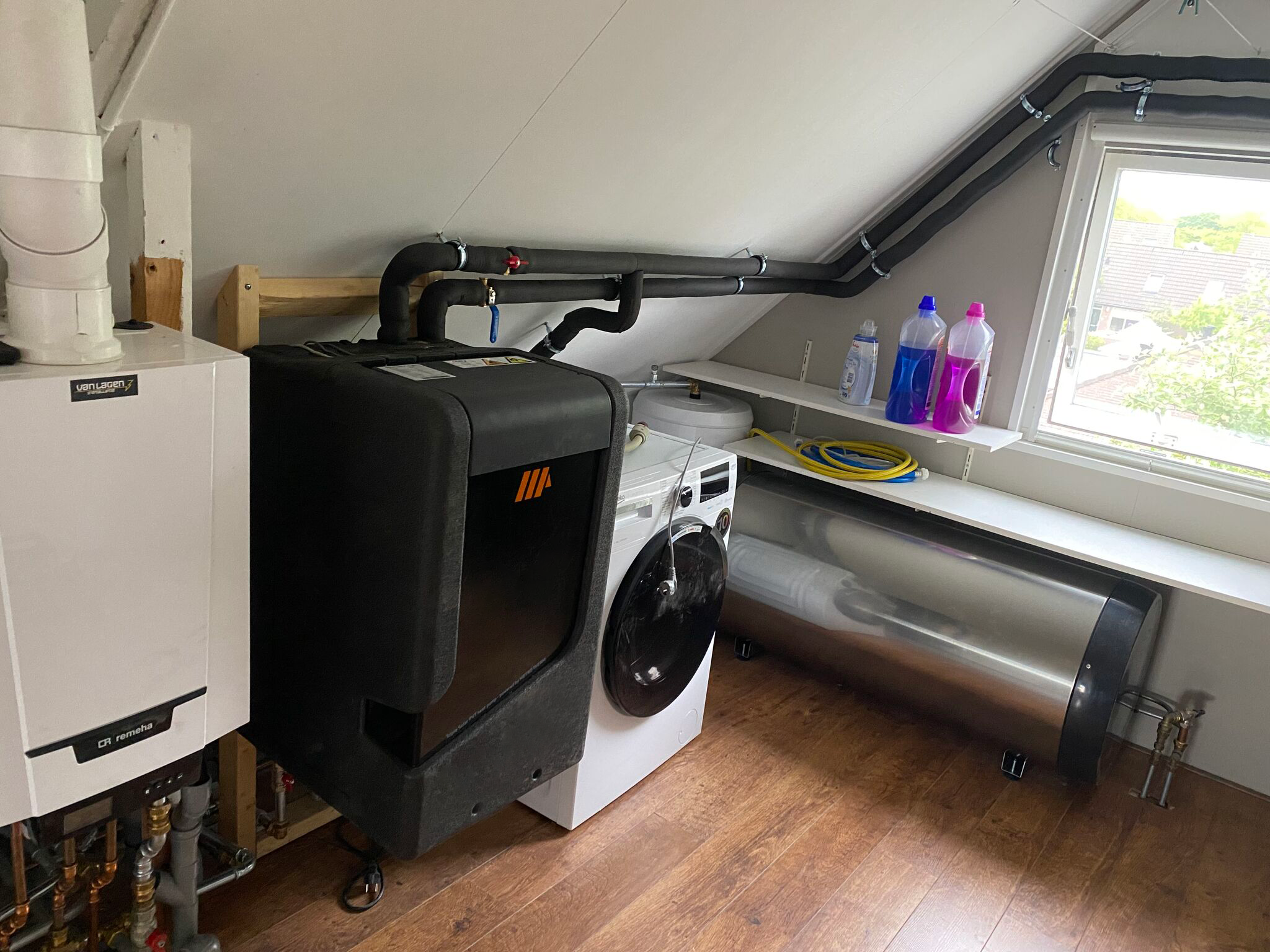 In Lunteren is een hybride Triple Solar PVT-warmtepomp geïnstalleerd in een woonhuis, samen met een liggende tapwaterboiler. Van Lagen Installatietechniek heeft ook de oude ketel vervangen door een moderne Remeha CV-ketel. Op het dak zijn 4 Triple Solar PVT-panelen geplaatst, die dienen als bron voor de warmtepomp. Daarnaast waren er al 10 bestaande PV-zonnepanelen aanwezig.