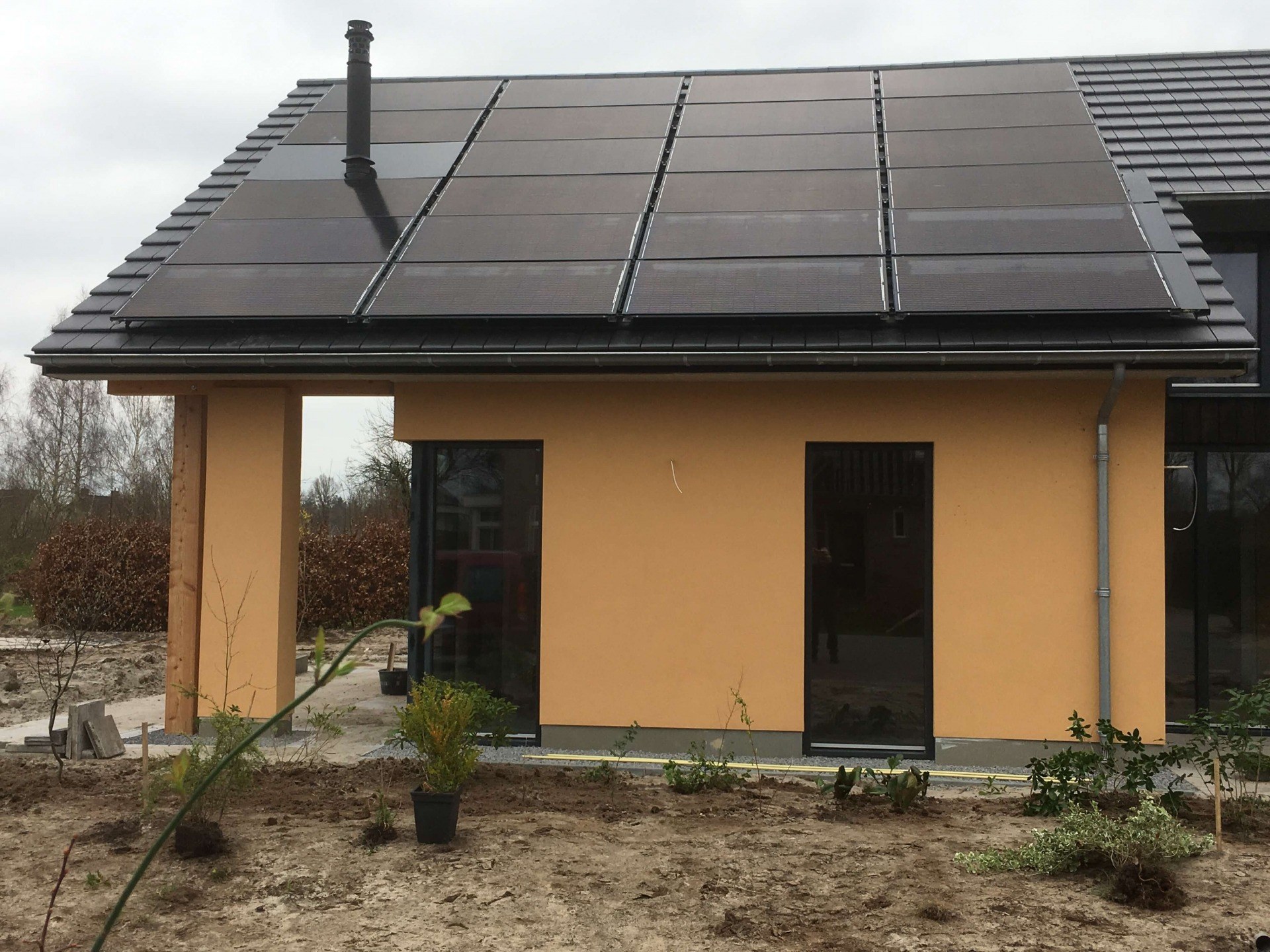 Het huis wordt verwarmd met een Triple Solar PVT systeem. Op het dak liggen 8 Triple Solar PVT-Panelen (340WP) en 15 PV panelen (ook van 340 WP). De Triple Solar PVT panelen zijn de stille en efficiënte bron voor de NIBE F1255 – 6 PC warmtepomp met ingebouwd 180 liter boilervat
