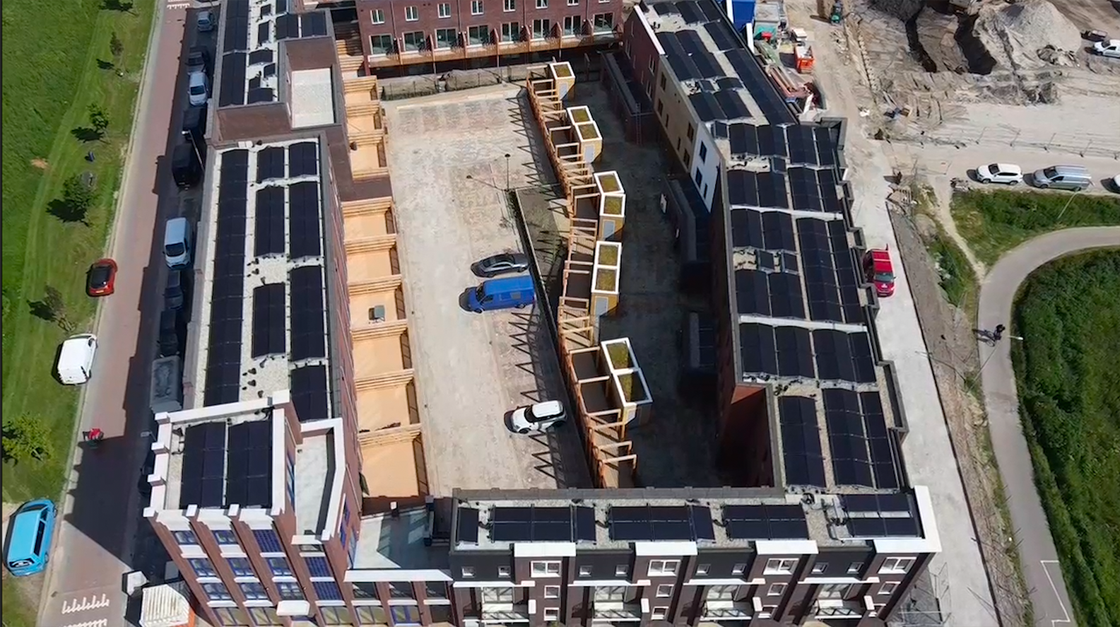 In Utrecht worden 40 energieleverende woningen gebouwd voor het project Lindehof. Op het dak zijn 188 Triple Solar PVT-panelen 450Wp, 36 zonnepanelen 450 Wp en 178 zonnepanelen van 375 Wp geïnstalleerd, in opdracht van De Graaf installaties.