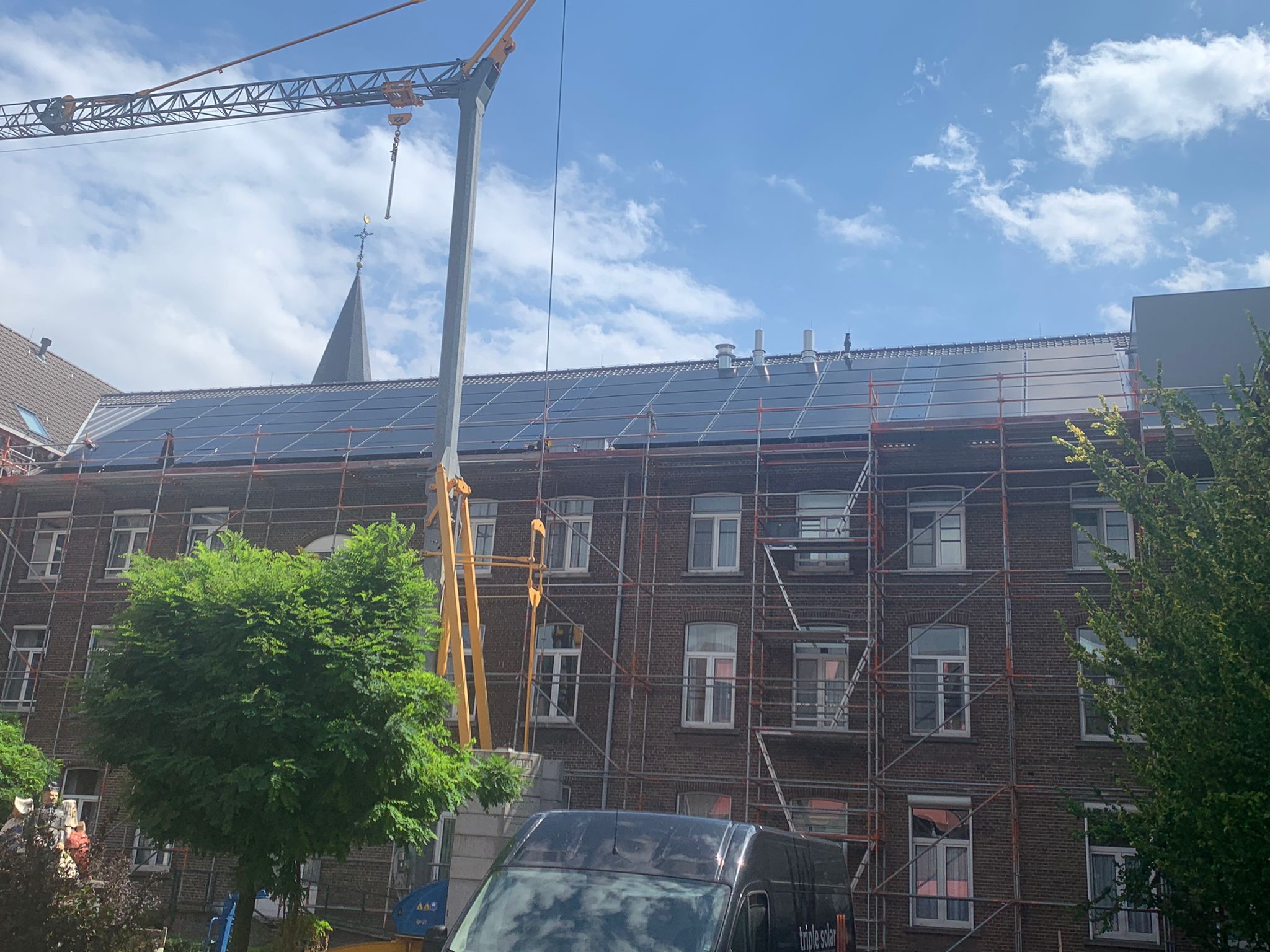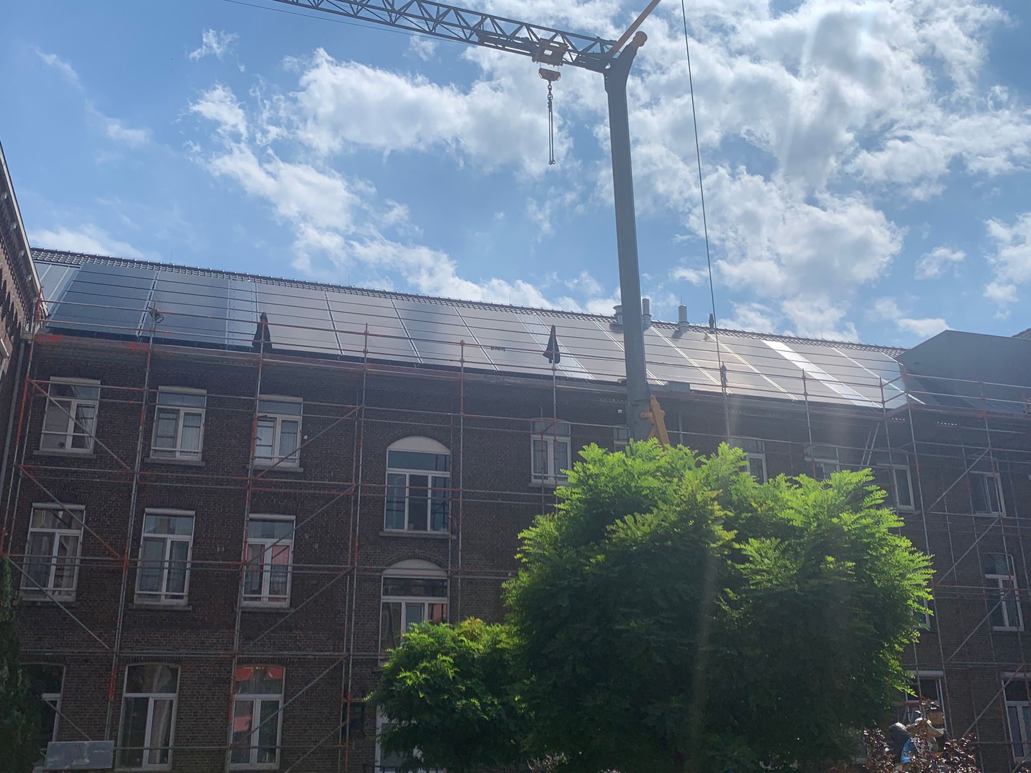 Op het dak liggen nu 108 Triple Solar PVT-panelen van 450 Wp, geïnstalleerd door Triple Solar. De zonne-energie die op het dak valt wordt niet alleen omgezet in elektriciteit, maar wordt ook gebruikt om het pand mee te verwarmen en te koelen. Het dak krijgt dus een dubbele functie en zo er kan zowel op de elektriciteits- als op de gasrekening bespaard worden.