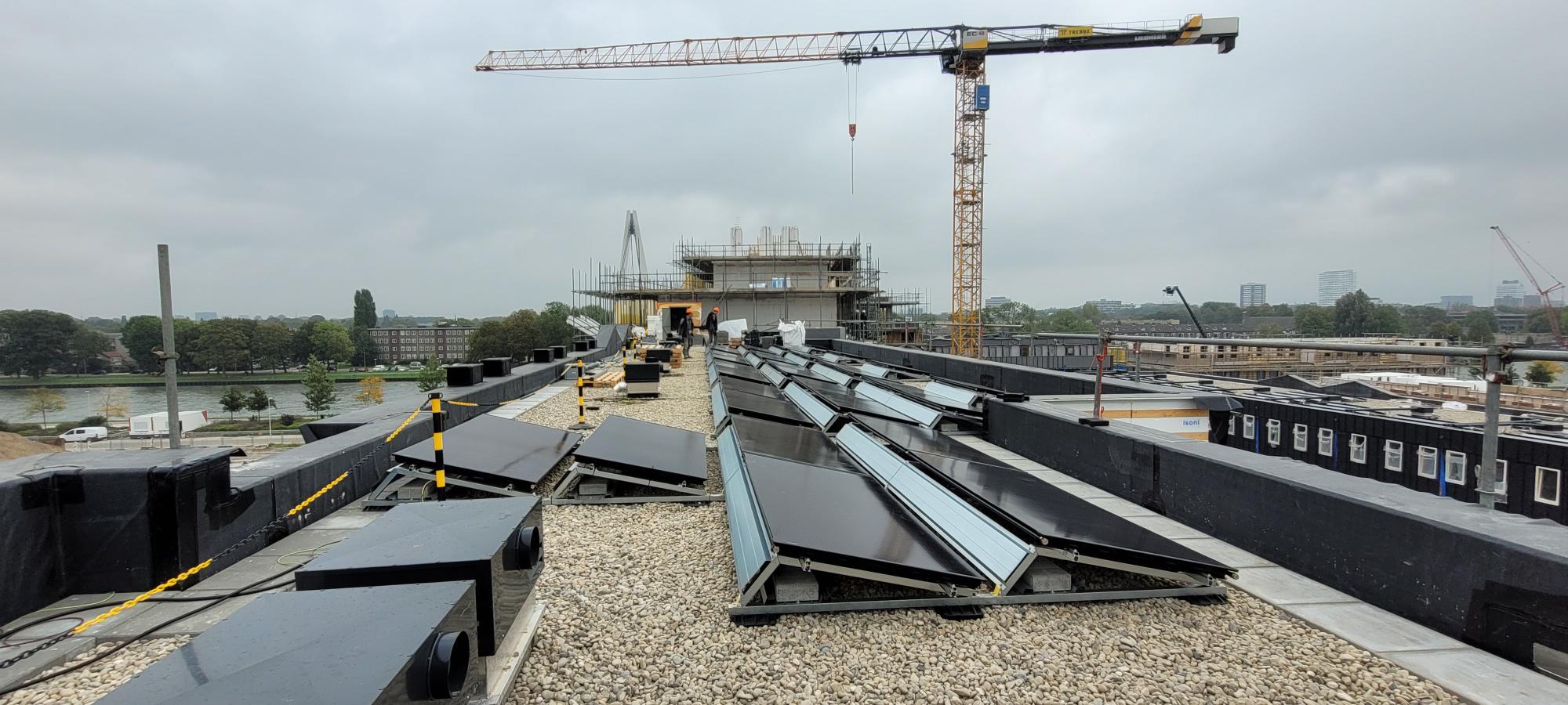 Triple Solar levert en installeert 186 Triple Solar PVT-panelen 450wp XL en 22 PV-panelen 450 XL voor de 30 grondgebonden woningen.
