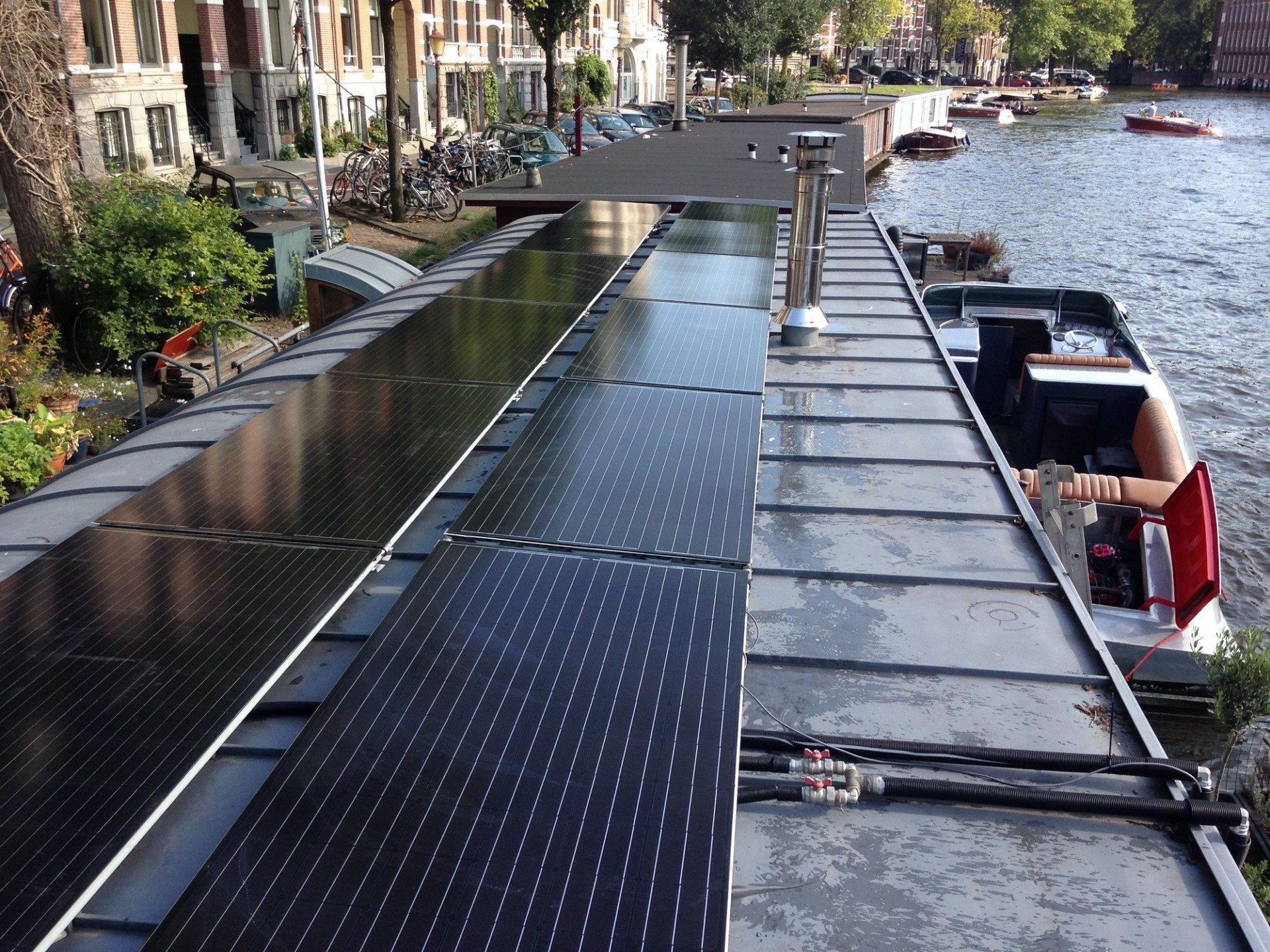 De montageframes zijn met speciale klemmen aan de felsen van het zinken dak bevestigd. Omdat er niet veel luchtbeweging is in het centrum van Amsterdam heeft Triple Solar twee extra PVT-panelen geplaatst. Om een energieneutrale woonark te maken zijn ook nog vier extra PV-panelen geplaatst.