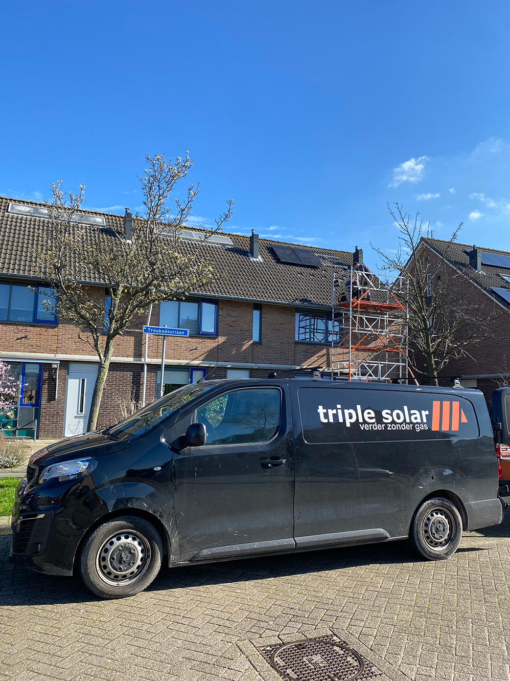 Het hybride PVT-systeem bestaat uit één Triple Solar PVT-warmtepomp 3.5, een tapwaterboiler en 3 PVT-panelen. Het hybride PVT-systeem vervangt een defecte zonneboiler in de woning. Dankzij het PVT-systeem heeft de bewoner nu niet alleen een duurzame (gratis) douche, maar ook verwarming en zonnestroom.