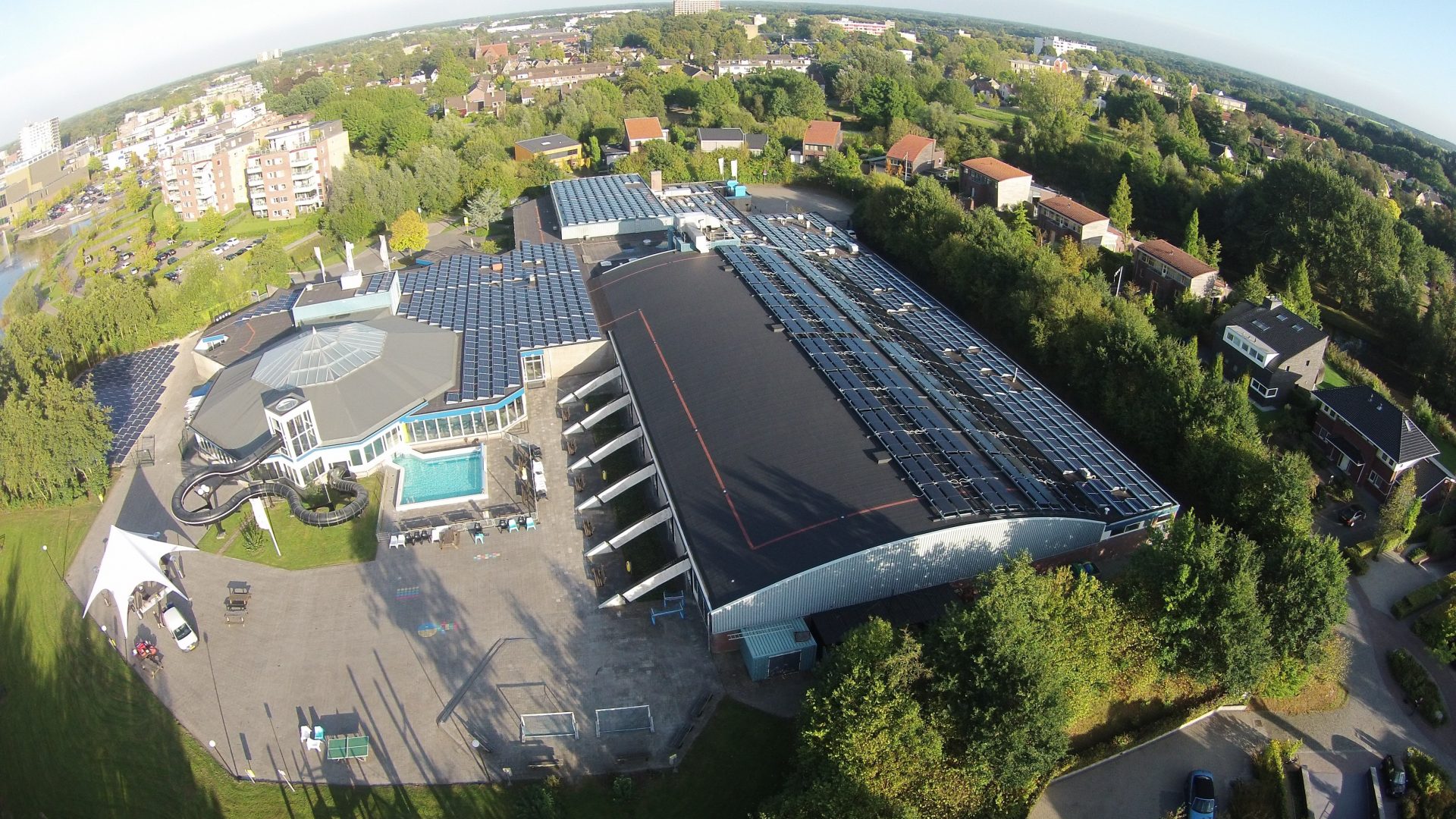 Samen met Koninklijke Damstra Installatietechniek heeft Triple Solar een energiezuinige installatie aan het zwembad geleverd. Naast 1182 PV-panelen zijn er op het dak van het grote 50 meter bad 256 Triple Solar PVT-panelen geïnstalleerd. Deze panelen wekken elektriciteit en warmte op. Een combinatie die juist voor een zwembad geschikt is omdat de Triple Solar PVT-panelen ervoor zorgen dat er ook op de grootste energiecomponent van een zwembad, gas, wordt bespaard.